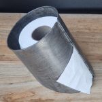 מתקן מהמם לנייר טואלט, עשוי מתכת בגוון אפור כהה עם חריץ לשליפה נוחה של הנייר.